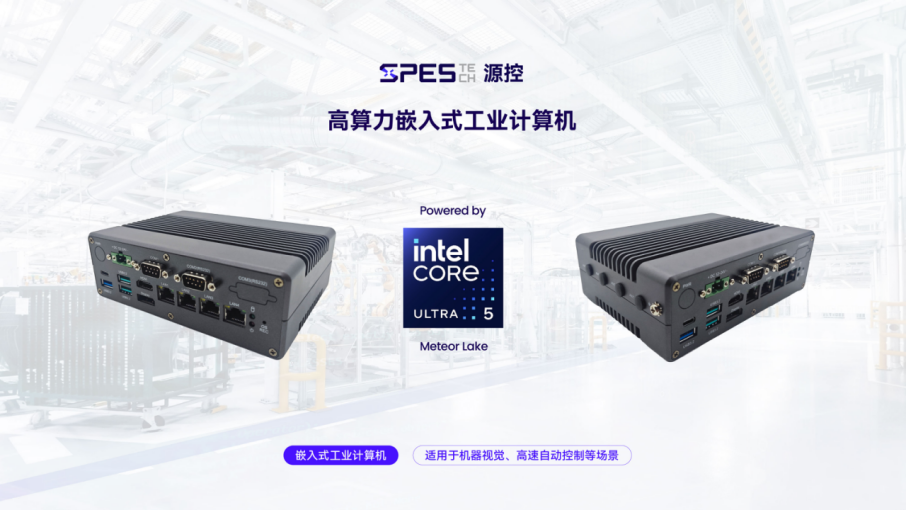 其中,工业品牌SPES TECH源控在2025工博会上对外发布了基于英特尔 酷睿 Ultra 5 处理器的高算力嵌入式工业计算机,搭载封装GPU与NPU的3.5英寸主板,为机器视觉、高速自动控制等场景提供计算平台。